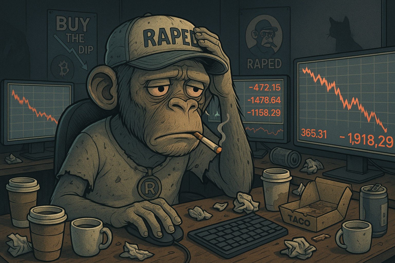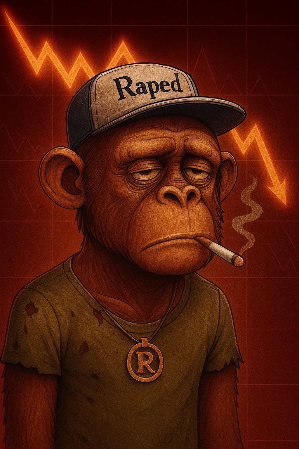 Welcome to Raped Ape, a safe haven for those who have faced losses in the crypto world. Join our resilient community of rekt apes today!
